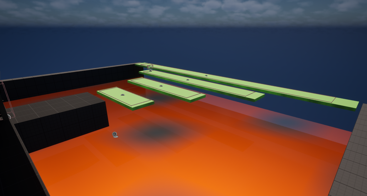 For this minigame, the PC has to use the YeetPlatform to launch into the air, where there are multiple falling platforms. They have to pick up a key and make it to the safe zone to open a door and see what is behind the door.