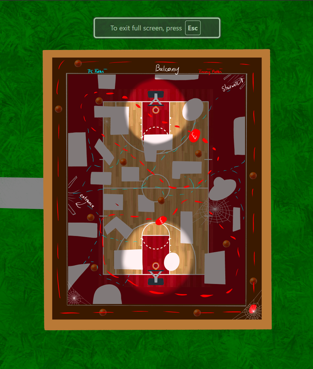 In this game, the goal is to get 6 total basketballs in the basketball hoops, but the catch is that each basketball has a different throw curve. So, one basketball could have a throw curve where you have to be really close to the basket, but another one will have one where you have to be as far from the basket as possible to make it. This is a challenge for the players because they have to sneak around the patrolling enemies while finding the right location to shoot the basketball from.
