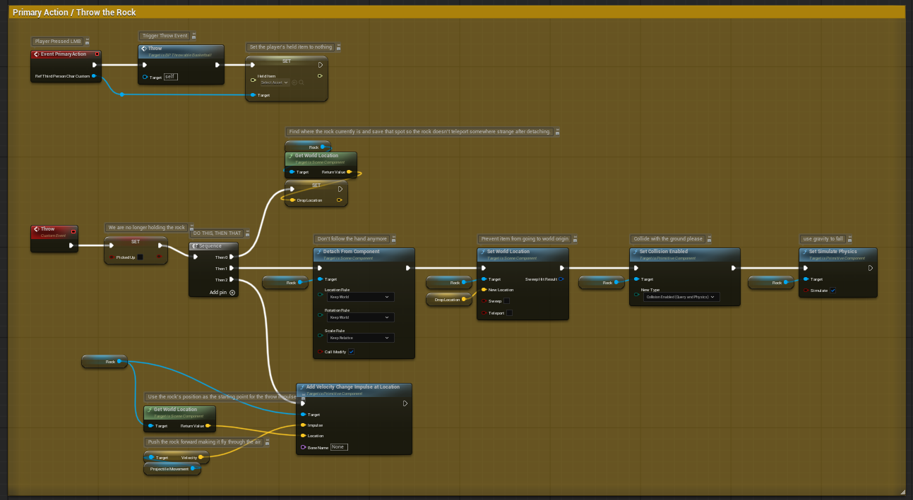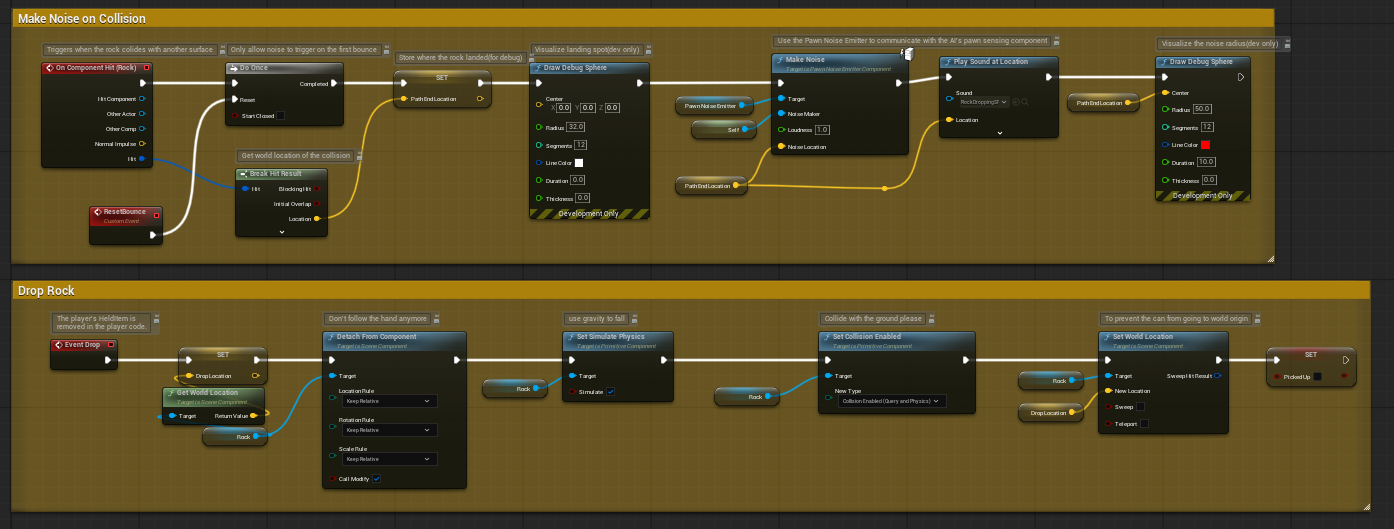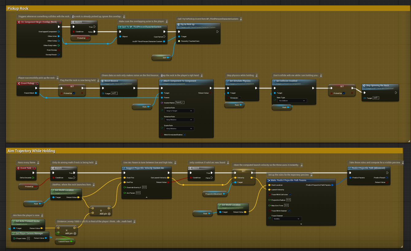 This blueprint was originally a distraction pawn item that we added about a month ago. I duplicated it and changed the mesh so that it looked like a basketball. This means all the coding was made by my teacher. I didn’t touch any of the coding that came with this because I was scared that I would end up ruining what was already there.